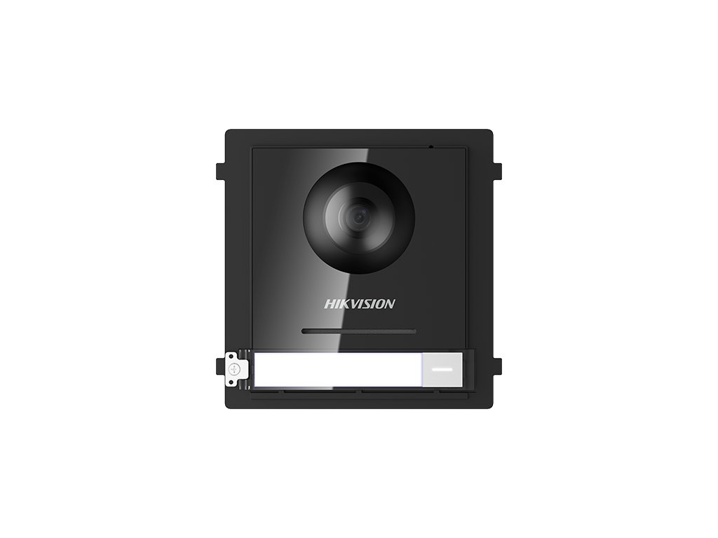 DS-KD8003-IME1(B) je centrální jednotka systému videovrátného Hikvision. Představený modul dveřní stanice je vybaven 2Mpx (Full HD 1080p) kamerou se zorným úhlem 146° / 82°. Kamera je navíc vybavena infračerveným (IR) přísvitem, který zajišťuje vynikající viditelnost i při slabém osvětlení.