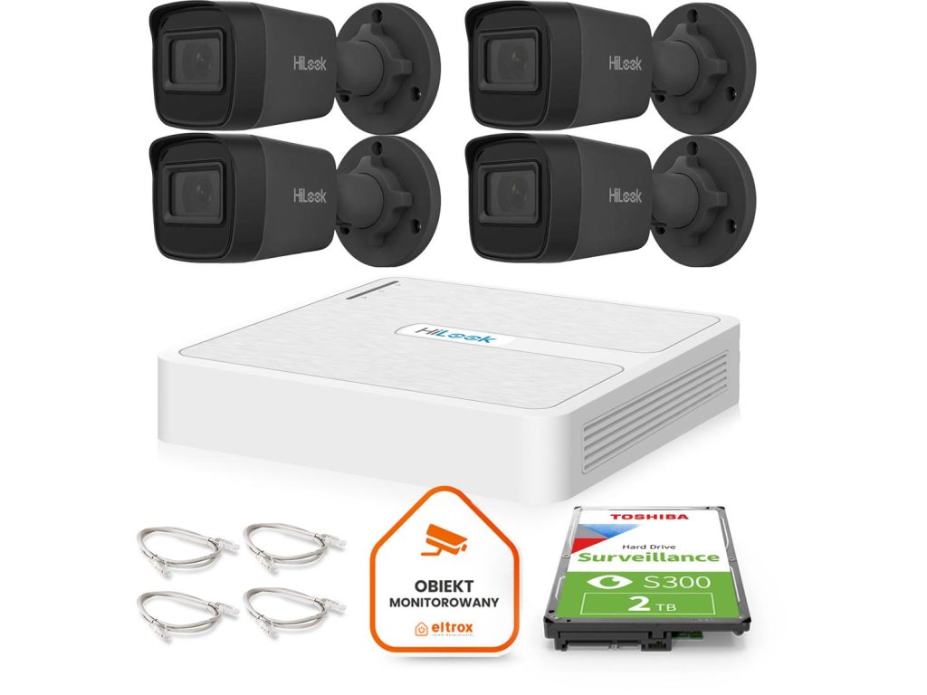 Sledovací sada Hilook 4x 4MP IP kamera + 4CH DVR + 2TB disk - Kompletní bezpečnostní systém 2K