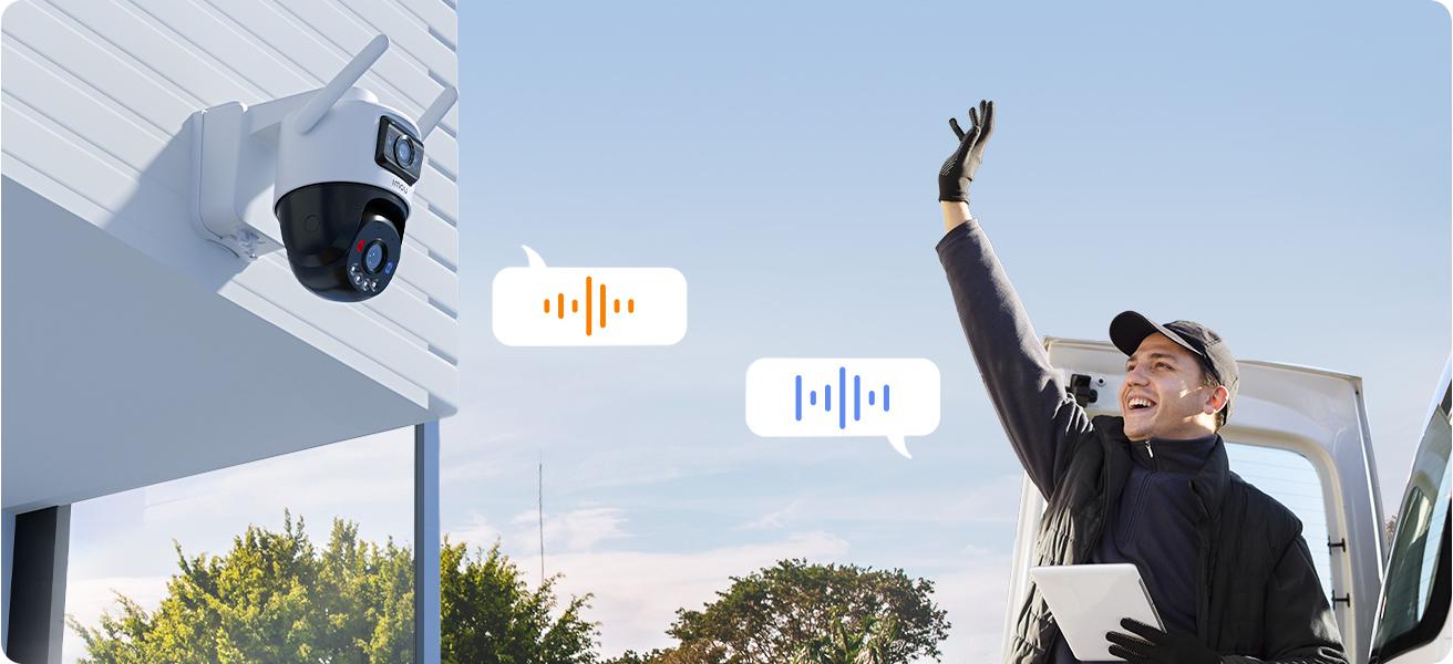 FotoaparátImou AOV Dual je vybavenvestavěný mikrofon a reproduktorabyste mohlimluvit s návštěvníky naživo - přímo prostřednictvím aplikace.