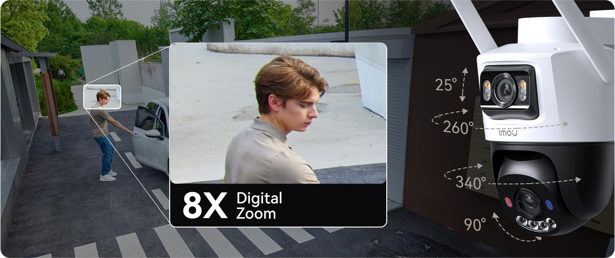 Široká oblast monitorování aaž 8× digitální zoom ujistěte se, že nic neunikne vaší pozornosti - každý detail máte plně pod kontrolou.
