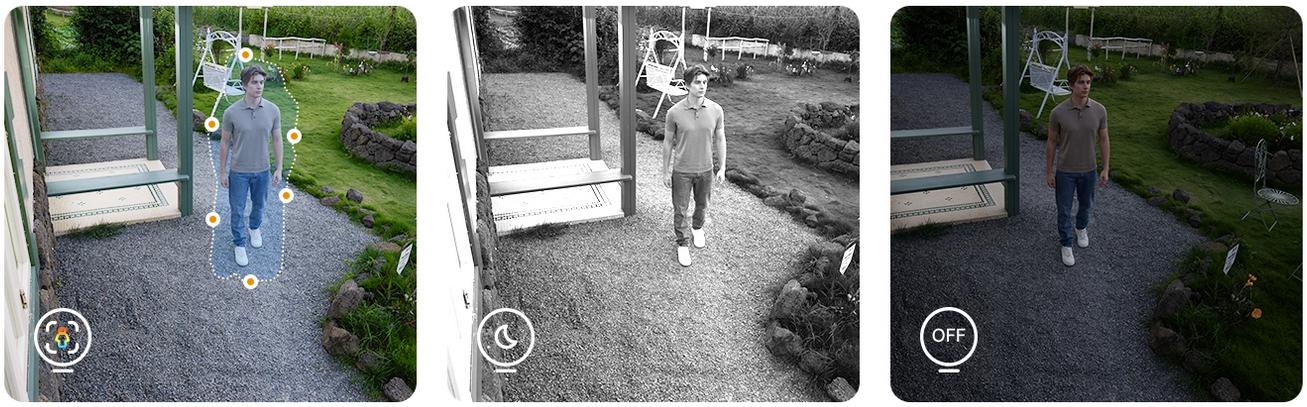FotoaparátImou AOV Dual nabízíinteligentní režimy nočního viděníkteré si můžete přizpůsobit svým potřebám. Zařízeníautomaticky přepne do barevného režimukdyž detekuje osobu, poskytuje jasný a čitelný obraz.