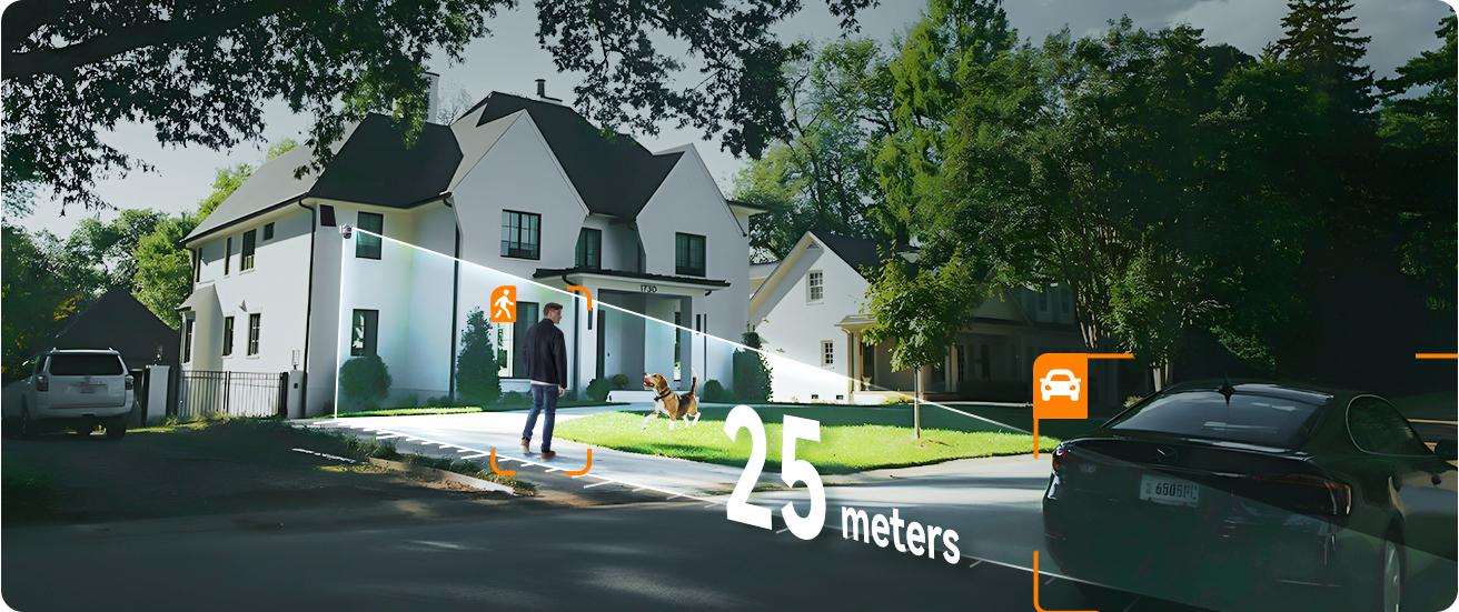Díky technologiímAOV, fotoaparátImou AOV Dual nabízímnohem větší dosah detekce než u standardních bateriových kamer - dokonce až do25 metrů. Inteligentní detekceosoby a vozidla eliminuje falešné poplachy a zajišťuje účinnou a přesnou ochranu monitorovaného prostoru.