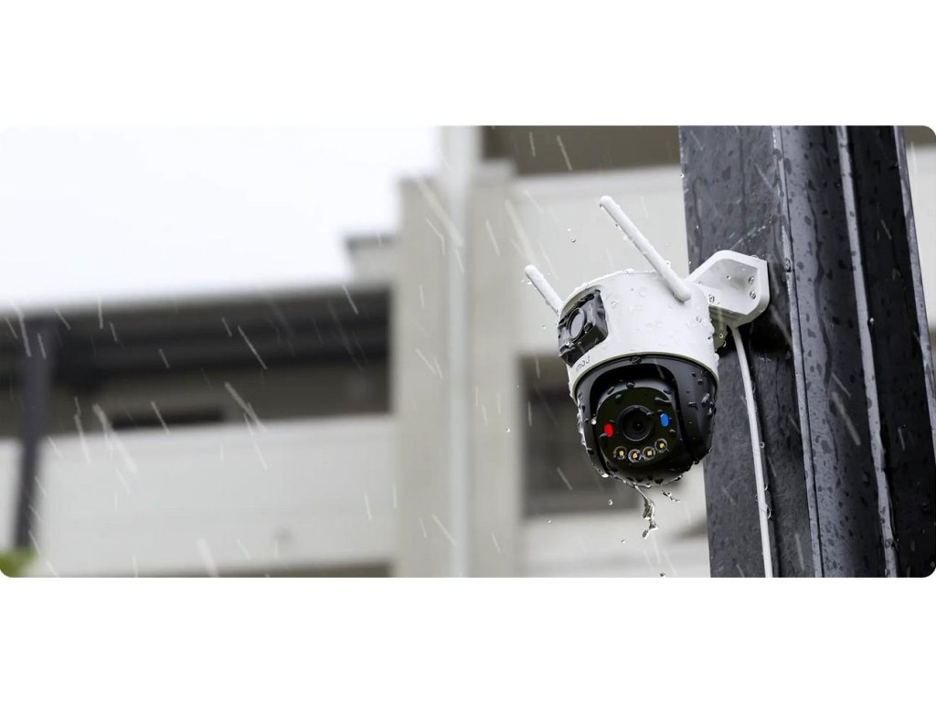 FotoaparátCruiser Dual 2 Pro má třídu těsnostiIP65, což znamená plnouodolnost proti prachu a dešti. Zařízení si snadno poradí sobtížné povětrnostní podmínkyjako je vítr, vlhkost nebo silné srážky, což zajistíspolehlivá ochrana 24 hodin denně, 7 dní v týdnu.