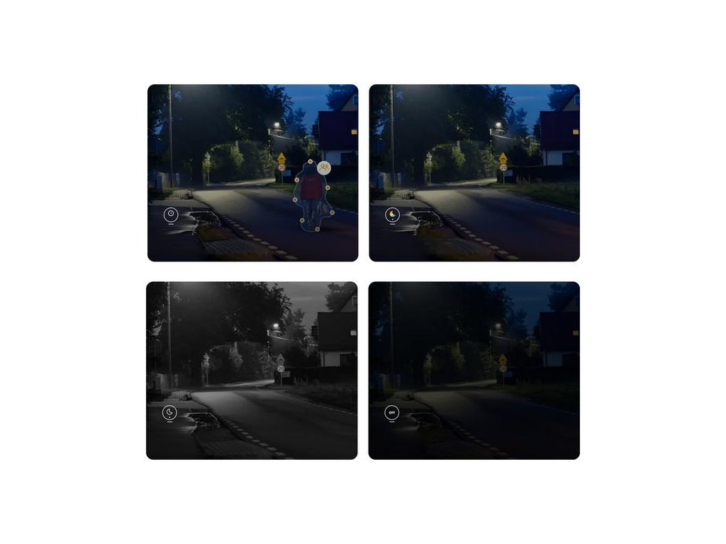 - Inteligentní režim - Při zjištění podezřelého pohybu se kamera automaticky přepne z infračerveného do barevného režimu.