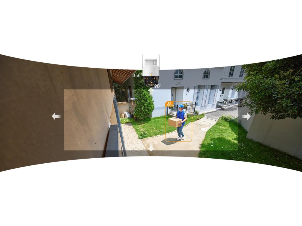 FotoaparátImou Cruiser SC automatickysleduje pohyb osob nebo vozidel, otáčeníhorizontálně až do úhlu 355° iaž 90° vertikálně. Díky tomu neunikne vaší pozornosti žádný detail a sledování pokryje celé okolí.