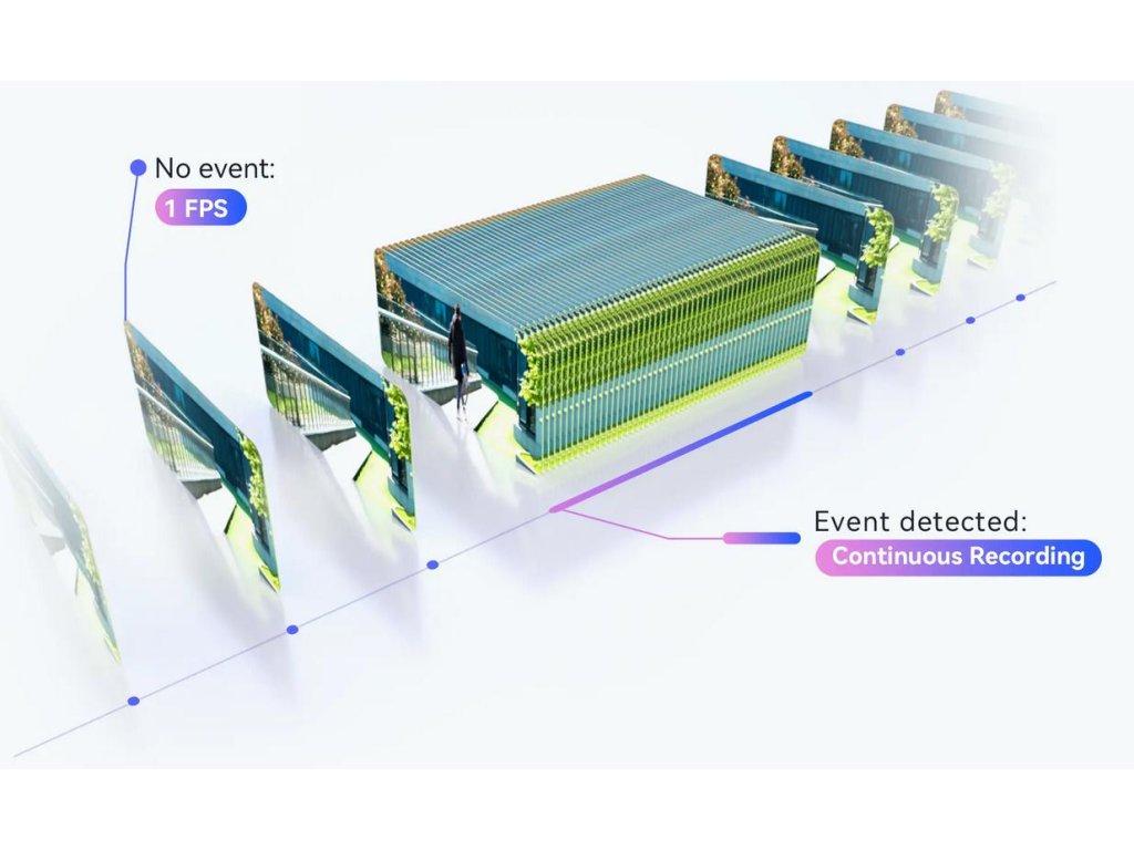 FotoaparátImou Cruiser SC působí vRežim nahrávání s celodenní úložnou kapacitou²který umožňujenepřetržitý záznam 24/7. Zařízení nahrává video při plné snímkové frekvenci, když jsou detekovány události, a v klidovém režimu se přepne na nahrávání s nižší snímkovou frekvencí. Díky tomuušetří až 80 % místa na paměťové kartě, aniž byste přišli o nějaký důležitý okamžik.