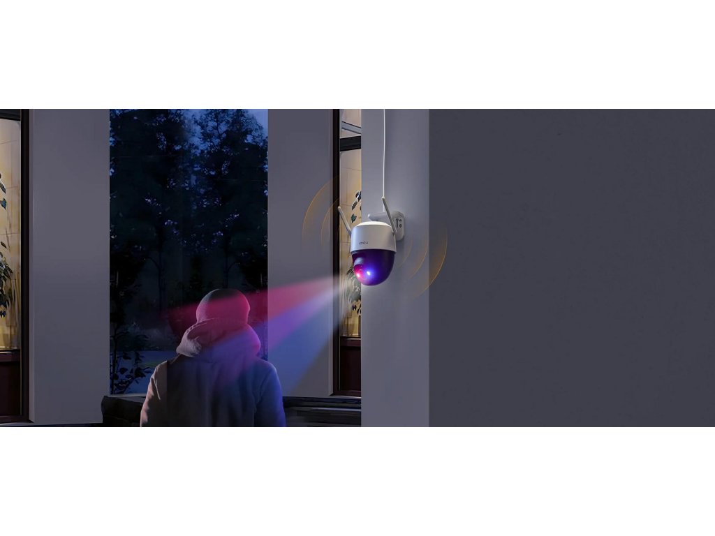 FotoaparátImou Cruiser SC umožňujeobousměrná komunikace v plně duplexním režimuabyste mohli v reálném čase mluvit s lidmi v okolí. Výkonný reproduktor ablikající červenomodrá výstražná světla účinně odradí nezvané hosty a zvýší úroveň zabezpečení vašeho domova.