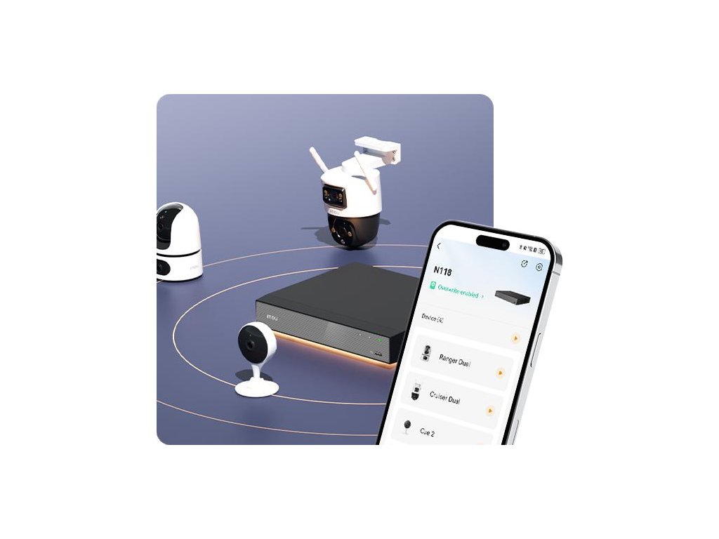 Fotoaparáty Imouautomaticky se připojit k rekordérubez nutnosti složité konfigurace. Stačí zařízení zapnout a systém je sám detekuje a spáruje - rychle, pohodlně a bez technických znalostí. Instalace monitorování je tak jednodušší než kdykoli předtím.
