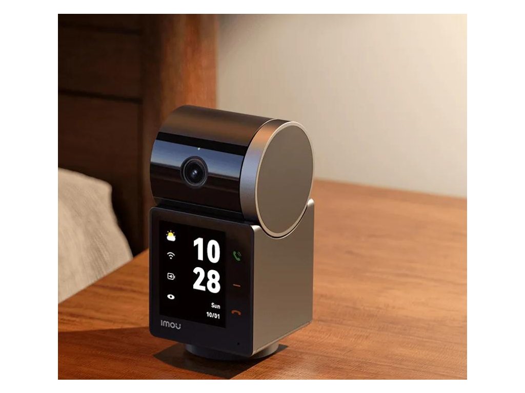Na informační obrazovce kamery Rex VT se zobrazuje datum, čas, počasí, stav sítě, úroveň nabití a stav režimu soukromí. Díky tomu může fungovat jako malý asistent, který vám pomůže zvládat každodenní rutinu.