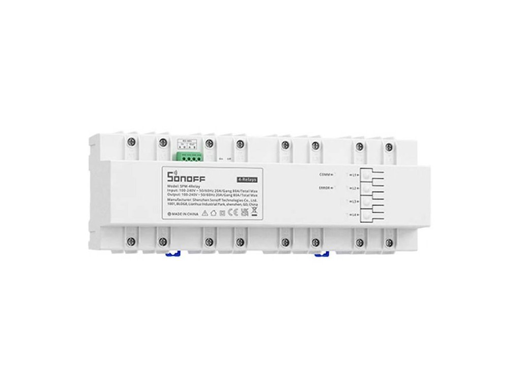 Inteligentní spínač Sonoff SPM-4Relay, který v kombinaci s modulem SPM-Main (prodává se samostatně) umožňuje měřit spotřebu energie. Zvládne 4 nezávislé kanály a umožňuje také použít ochranu proti přetížení, která chrání zařízení před poškozením. Výrobek se také velmi snadno instaluje - můžete jej snadno namontovat na vodicí lištu.