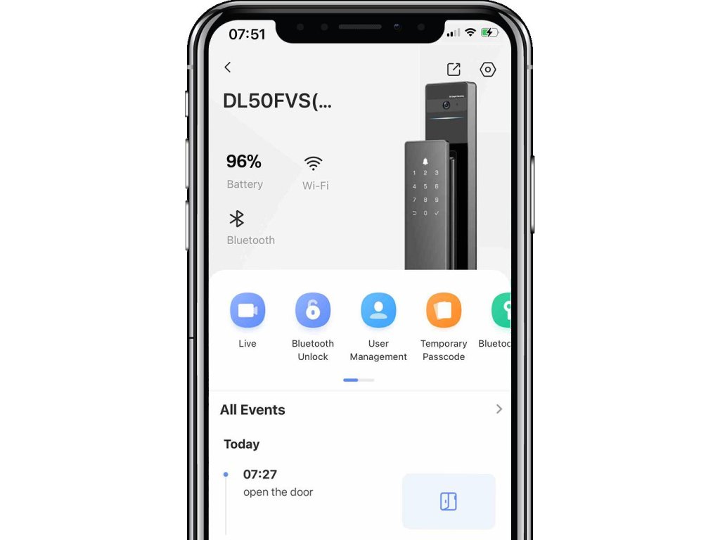 DL50FVS je napájen velkou vestavěnou baterií s kapacitou 5000 mAh, která zajišťuje nepřetržitou ochranu vašeho domova. Zařízení stačí nabíjet pouze jednou za čtyři měsíce. Pokud se baterie vybije, můžete zařízení připojit k powerbankě pro nouzové odemčení dveří.