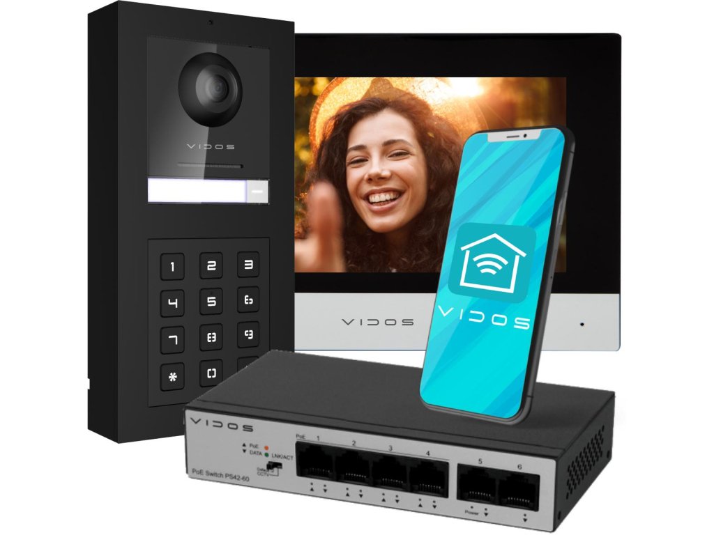 - 1 x PoE Switch 4 porty VIDOS ONE PS 42/60 23817