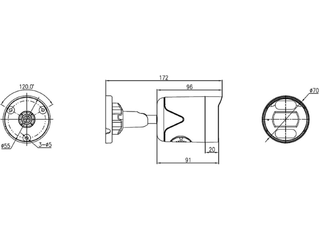 5MP (20FPS) IP kamera s 2,8mm pevným | 1/3" objektivem CMOS. Funkce D-WDR, mechanický IR-Cut filtr. IR LED s dosahem až 30 metrů. Funkce DualLight. Vestavěný přísvit bílého světla (teplá barva) s dosahem až 30 metrů, aktivuje se při detekci poplašného objektu. Podporuje protokol ONVIF S a podporuje karty SD s kapacitou až 256 GB. Kovové pouzdro - krytí IP66.