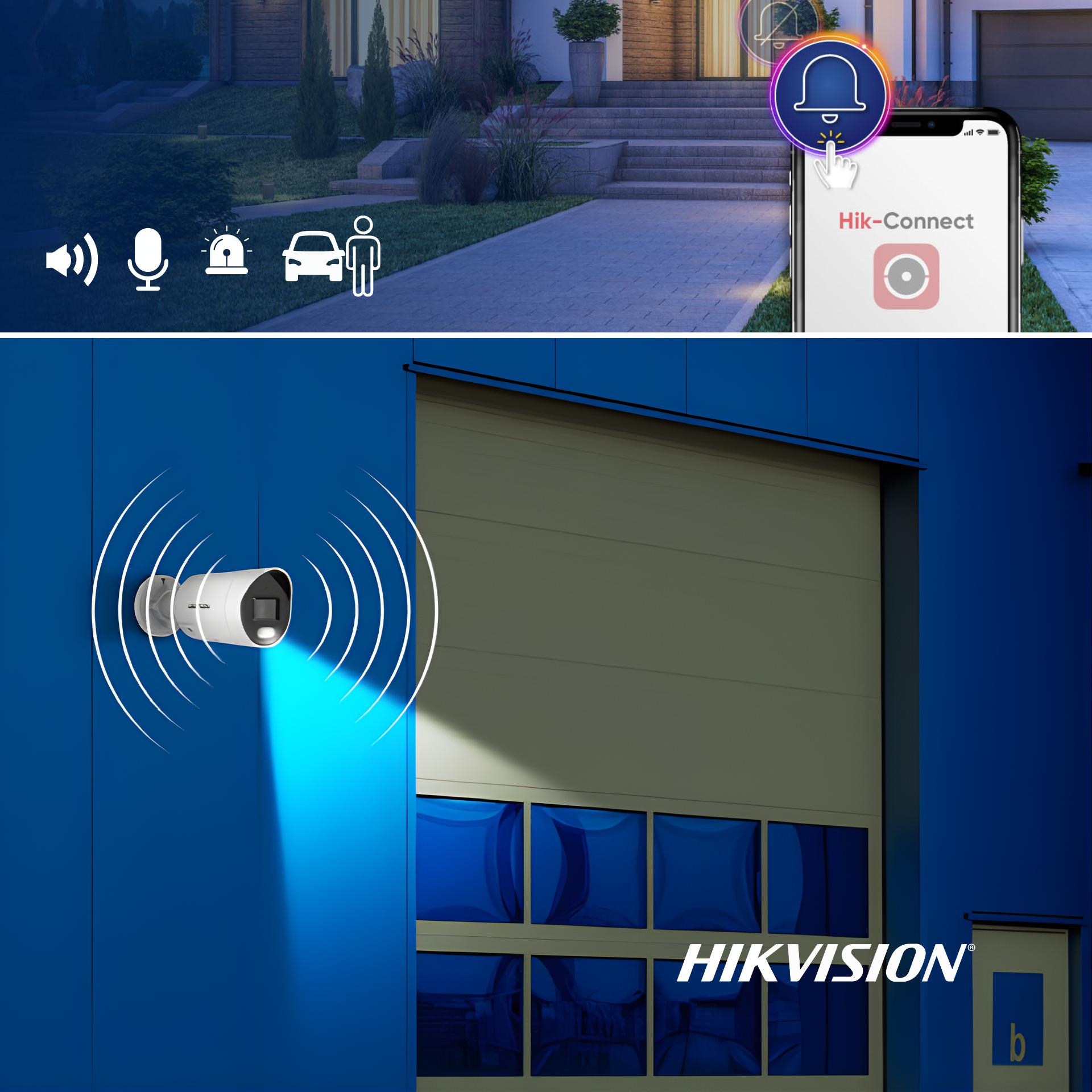 U kamer vyšší třídy nabízí společnost Hikvision pokročilou detekci lidí a vozidel (např. pomocí algoritmů AI AcuSense) a po detekci narušitele se zobrazíbílé stroboskopické světlo a siréna nebo předem nahraná hlasová hlášení. Kombinuje vysokou kvalitu obrazu, inteligentní analýzu a účinný odstrašující účinek.