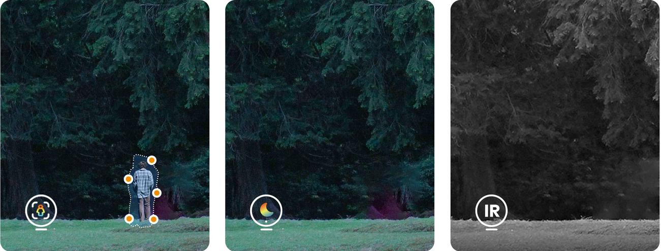 Zařízení také nabízí inteligentní noční režim se třemi provozními režimy, které lze upravit podle situace a potřeb uživatele. Kamera dokáže automaticky přepínat mezi infračerveným režimem, barevným obrazem s osvětlením a inteligentním režimem aktivovaným při detekci pohybu, což zajišťuje efektivní sledování ve dne i v noci.