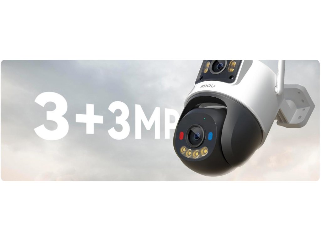 - Duální objektiv 3MP + 3MP (celkem 6MP) - detailní obraz a sledování dvou zón současně