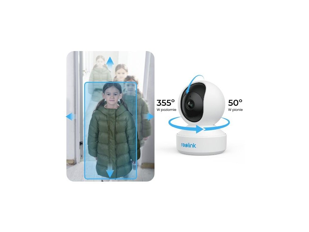 Kamera Reolink E330 má široký rozsah otáčení až 355°, takže dokáže přesně sledovat celou místnost. Díky funkci automatického sledování kamera sama sleduje pohybující se osoby nebo zvířata a udržuje je neustále v záběru. Pokročilé detekční algoritmy zajišťují přesnou a spolehlivou odezvu, takže máte sledované prostředí vždy plně pod kontrolou.