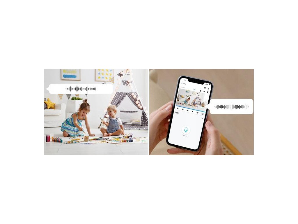 Funkce obousměrného přenosu zvuku umožňuje volně komunikovat s osobami v blízkosti kamery - bez ohledu na to, kde se právě nacházíte. Toto praktické řešení je ideální pro každodenní interakci a pohodlné sledování vašeho okolí.