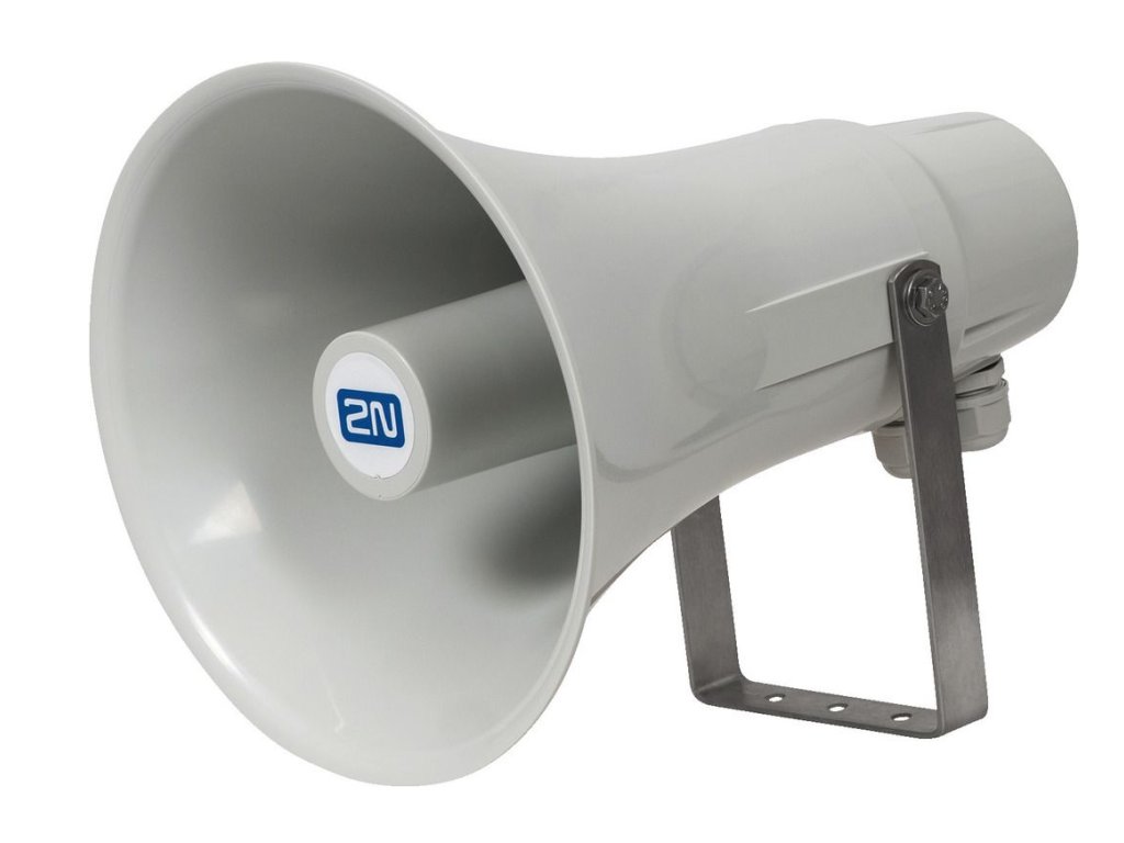reproduktor 2N® SIP Horn je venkovní reproduktor s výjimečně hlasitým a srozumitelným zvukem. Reproduktor je praktickým nástrojem pro vysílání hlasových zpráv na velkých plochách a v systémech zabezpečení majetku. Pokud do objektu vstoupí nežádoucí návštěvník, může být vetřelec okamžitě odraden automatickou hlasovou zprávou nebo živým hlášením.