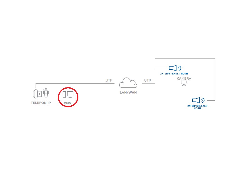 Kompatibilita se systémy správy uzavřeného televizního okruhu (VMS) umožňuje vzdálenou automatickou reakci na detekci pohybu kamerami pomocí nahraných hlášení nebo živě operátorem systému.