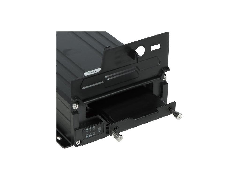 - Jednotka je navržena tak, aby byla odolná proti vibracím a nárazům. Data lze ukládat na 2 karty SD nebo 2,5" pevný disk.