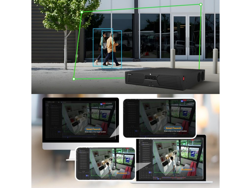 | Výkon | Pokud kamery podporují technologii Hikvision AcuSense a mají povolenou funkci AcuSearch, podporuje NVR funkci AcuSeek na všech kanálech, která dokáže modelovat 300 000 cílů/den. |