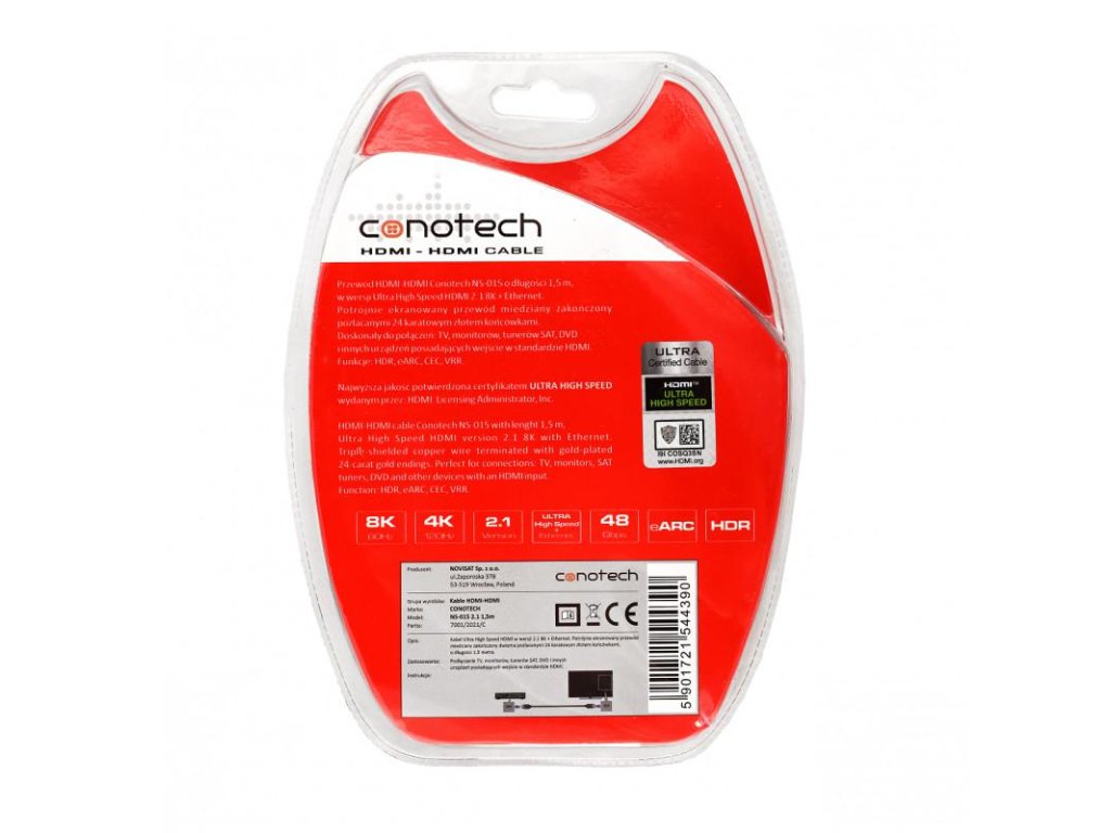 CONOTECH HDMI KABEL NS-015 ver. 2.1 8K 1,5 m: