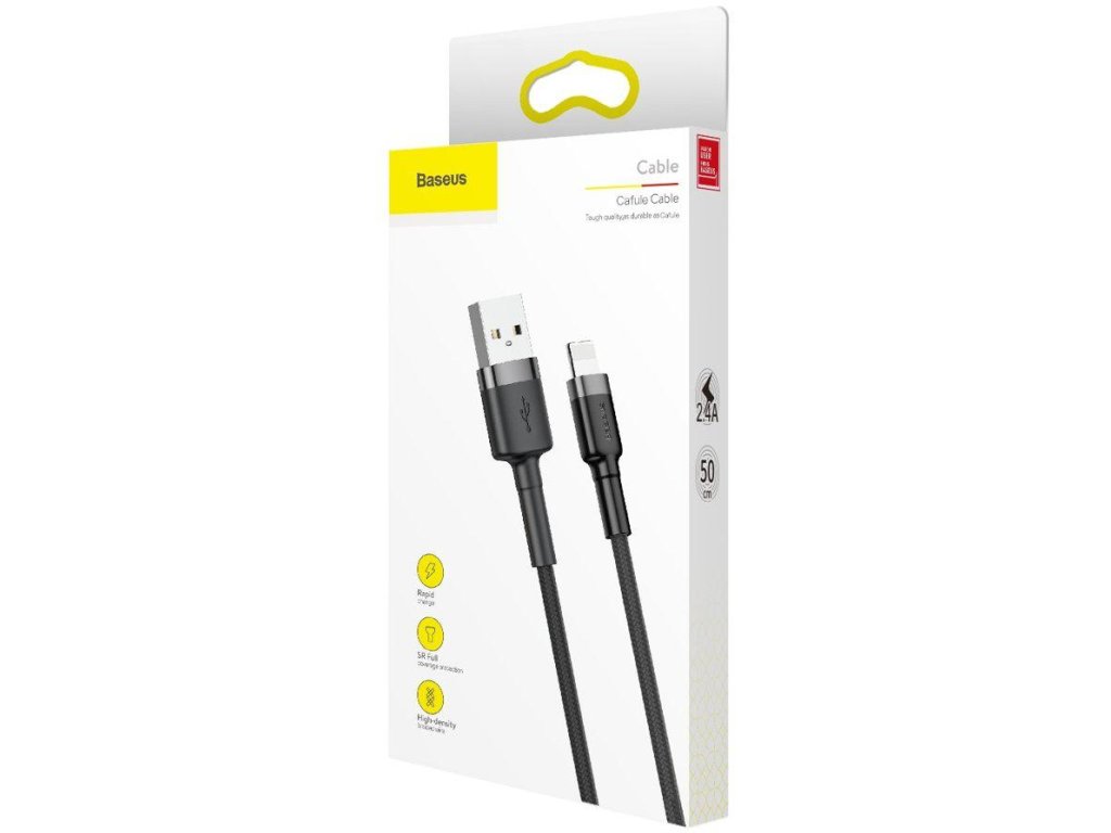 Kabel USB-A -> Lightning / iPhone Baseus Cafule CALKLF-AG1 50cm Apple 2.4A ČERNÝ/ŠEDÝ KABEL