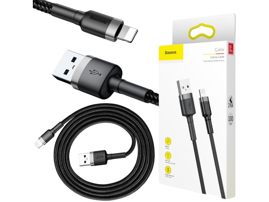 - Kabel Baseus Cafule CALKLF-BG1 100cm je řešení, které přesahuje standardní očekávání uživatelů elektronického příslušenství. Díky své všestrannosti a výkonu si poradí prakticky s jakýmkoli zařízením s portem Lightning což z něj činí vynikající volbu jak pro pro majitele telefonů, iPhonů a iPadů .