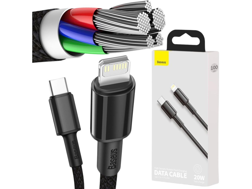 - Kabel Baseus USB typ C - Lightning CATLGD-01 1m 20W je mimořádně robustní a funkční příslušenství, které umožňuje okamžité a bezpečné nabíjení a přenos dat.