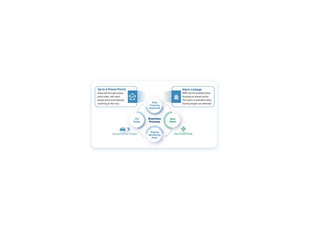 - IVS (inteligentní analýza videa, detekce osob/vozidel)
