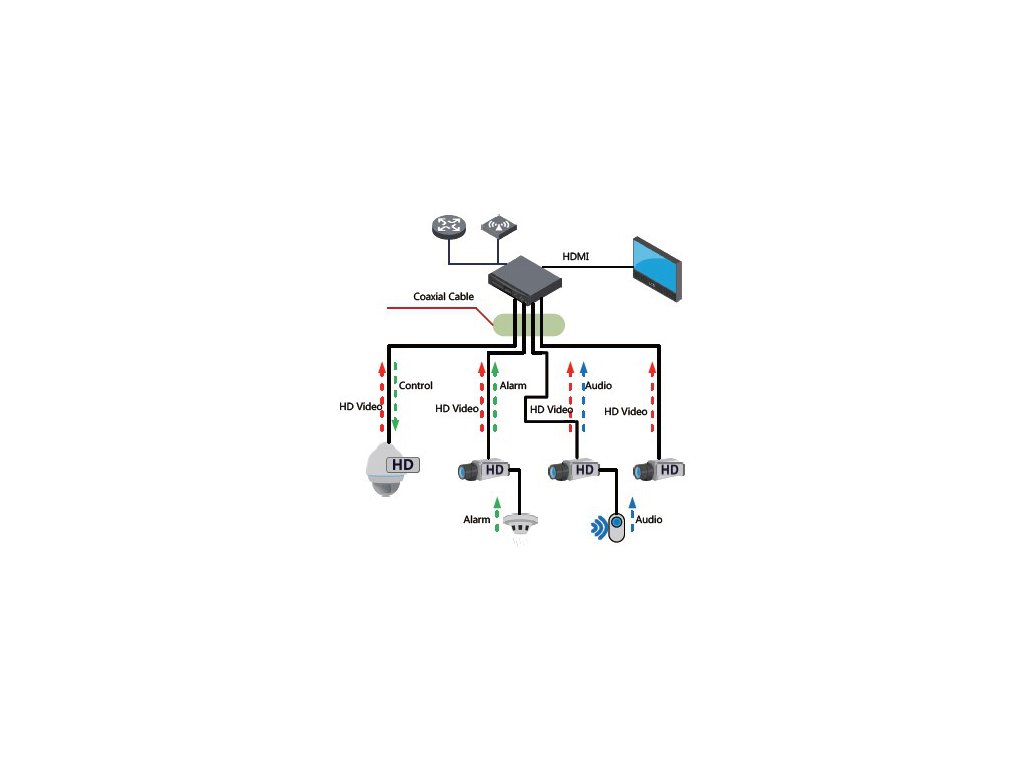 Technologie HD-CVI umožňuje, aby video, audio a řídicí signály procházely jediným kabelem.