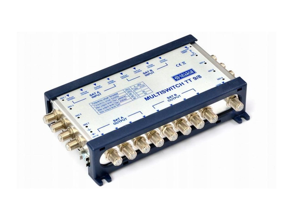 Multipřepínač typu TT 9/8 je zařízení, které umožňuje budovat velké a velmi velké komunální instalace. Nové nařízení ministra dopravy, stavebnictví a námořního hospodářství o technických podmínkách, které by měly budovy splňovat, ukládá povinnost budovat multipřepínačové instalace v každé nové budově pro více rodin. Jako kaskádové zařízení má multipřepínač průchozí výstupy, ke kterým lze připojit další multipřepínač, takže při použití rodiny multipřepínačů TT-9xx lze velikost instalace téměř libovolně škálovat. Nespornou výhodou multipřepínačů TT-9xx je vestavěná předkorekce charakteristiky (sklon charakteristiky). Tato vlastnost zařízení v kombinaci s jevem rostoucího útlumu kabelu s rostoucí frekvencí umožňuje vyrovnávat úrovně signálu na účastnické zásuvce. Zařízení umožňuje škálovat síť přidáním dalších multipřepínačů v kaskádě. Poslední multipřepínač v kaskádě by měl být zakončen 75Ohm DC BLOCK terminátory, které je třeba zakoupit zvlášť. Aby byla zajištěna odpovídající úroveň signálu na účastnické zásuvce, měl by být proveden výpočet energetické bilance.