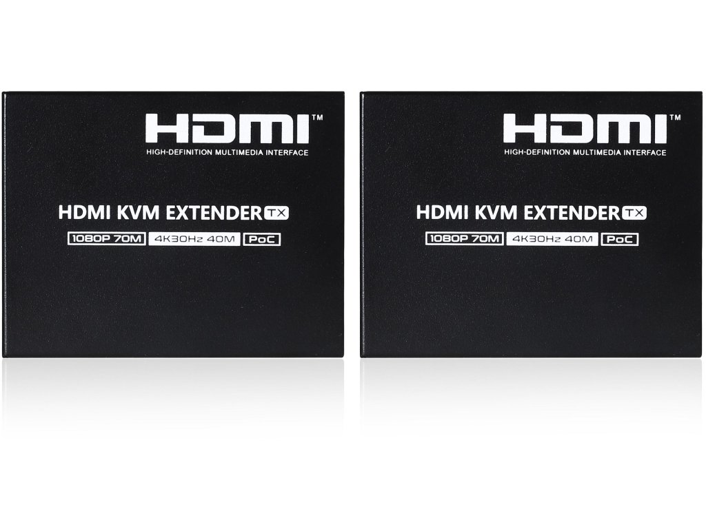 Tento prodlužovač HDMI™ KVM obsahuje vysílač a přijímač a umožňuje přenášet signály HDMI™ až na vzdálenost 70 metrů při rozlišení 1080p po síťovém kabelu Cat6/6A/7. Využívá konfiguraci připojení bod-bod a podporuje KVM. Je ideální pro venkovní reklamu, monitorovací systém, domácí zábavu, konference atd.