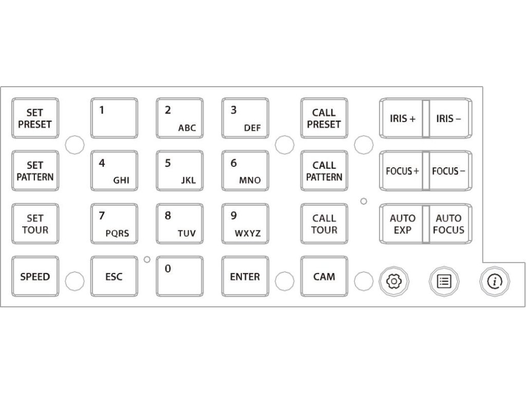 Síťová klávesnice s plným rozsahem ovládání a programování kamerových hlav PTZ: