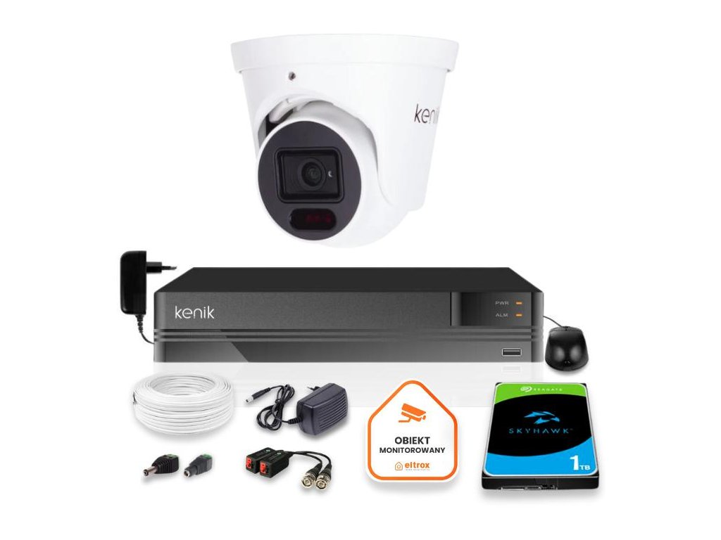 Nastavení na základě vybavení značkyKeniknabízející kvalitu obrazu 5MPx. Fotoaparát určené pro venkovní i vnitřní použití, např. monitorovánídomov, obchod. Zaručený záznamaž 14 dní. Díky infračerveným LED diodám kamera monitoruje prostor až 30 m v úplné tmě. Rozšiřitelná sada se 3 HD a 2 IP kamerami.