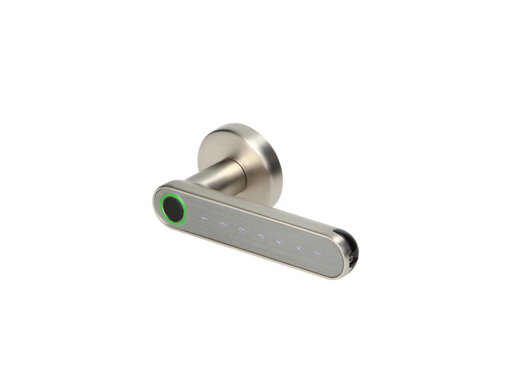- Moderní kombinovaná klika s dotykovou klávesnicí a čtečkou otisků prstů vhodné pro použití na pravých i levých dveřích místo tradiční kliky.