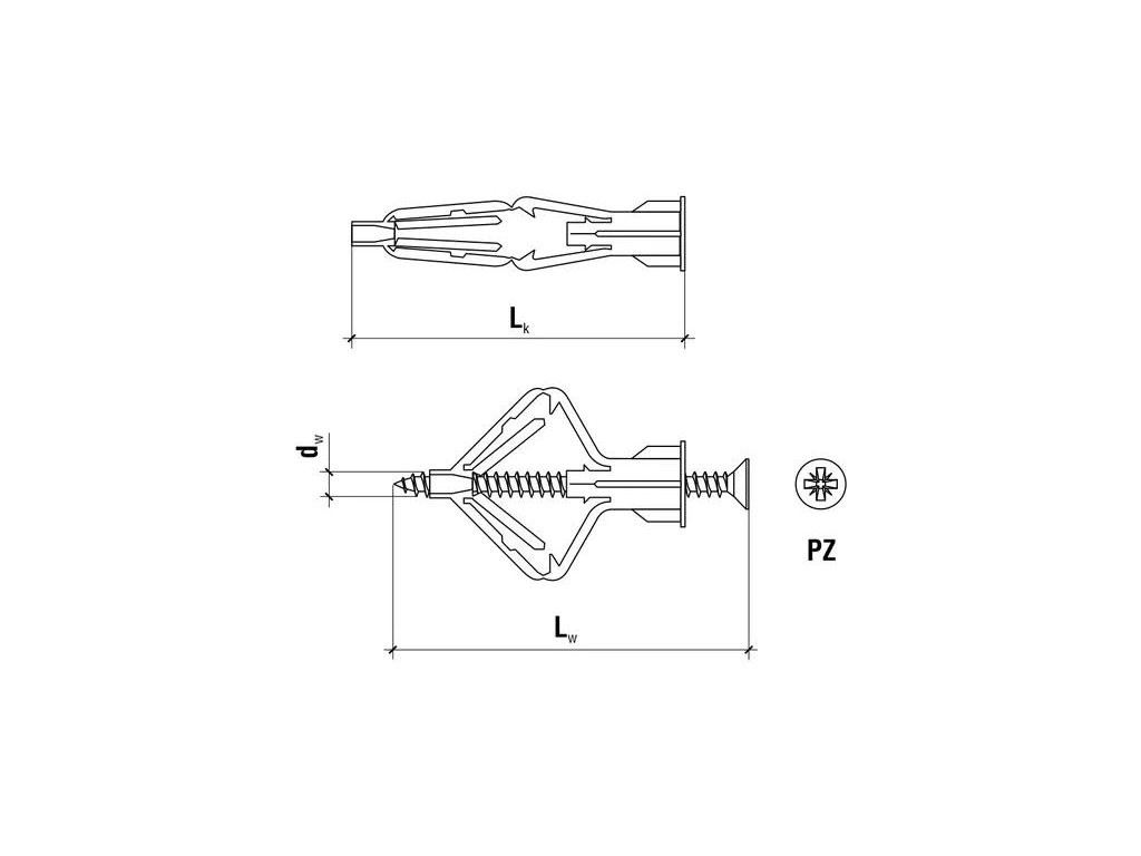 Upevňovací prvek pro upevnění do sádrokartonu. Upevňovací prvek pro lehké upevnění e G-K podklady a podklady se vzduchovými dutinami,