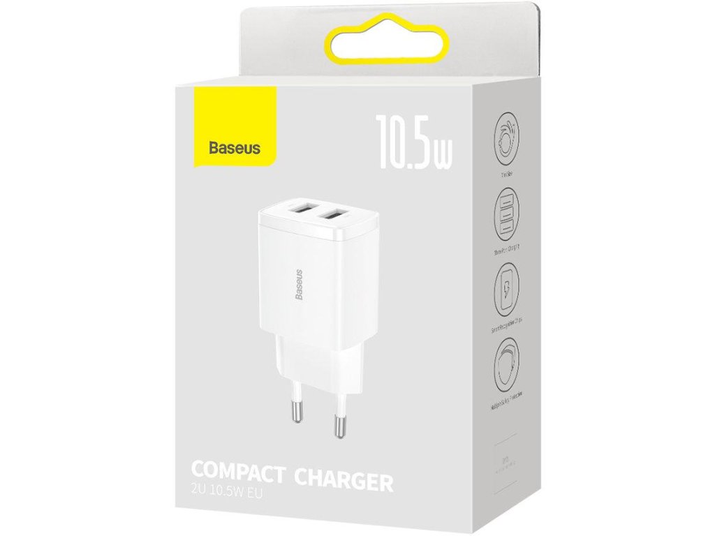 Baseus Compact white 2xUSB 10,5W síťová nabíječka (CCXJ010202) - Klíčové vlastnosti: