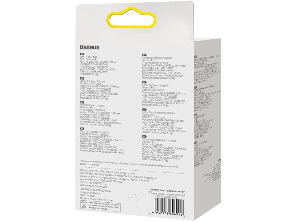 - Kompaktní nabíječka Baseus CCXJ010202 zajišťuje nejen bezpečnost nabíjených zařízení, ale také bezpečnost svou a svého uživatele!
