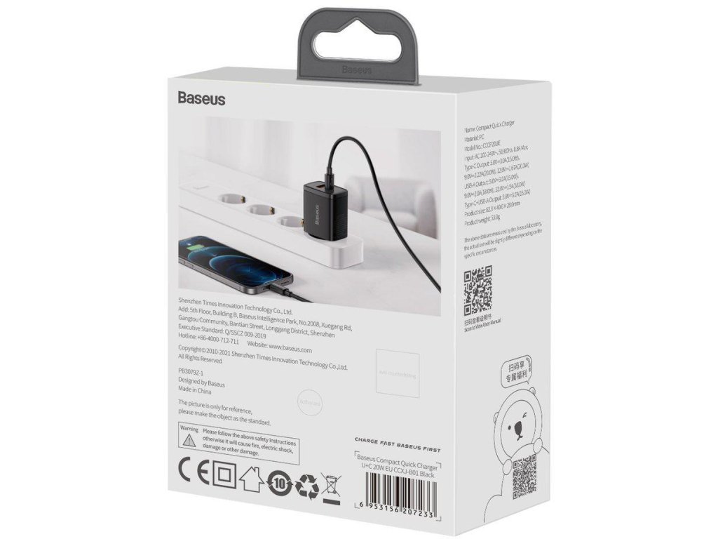 - Řada bezpečnostních certifikátů a inteligentní řízení ochrana proti přehřátí, přebití a přepětí udržujte své zařízení v bezpečí Kompaktní rychlonabíječka Baseus CCXJ-B01 během nabíjení.