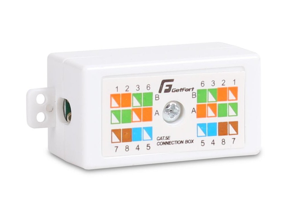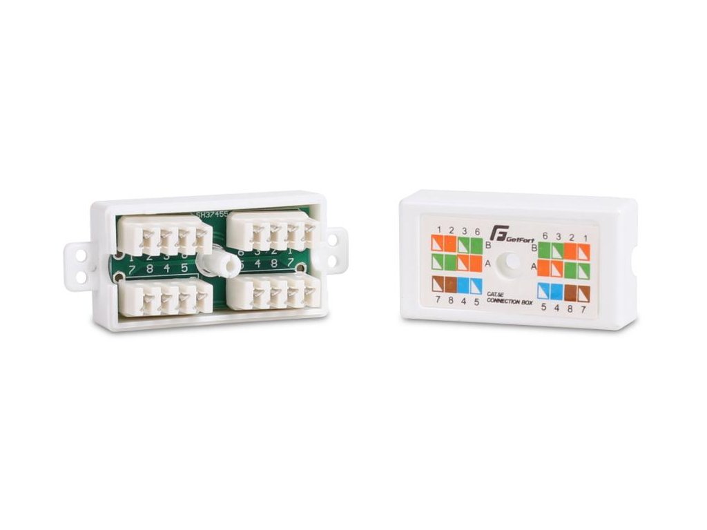 Konektor kabelu UTP cat.5e. Umožňuje připojit kabely bez ztráty signálu. Je ideální jako prvek k prodloužení kabelu nebo jako opravná sada. Konstrukce konektoru (konektory typu LSA/KRONE) umožňuje spolehlivé spojení pomocí typického lisovacího nástroje LSA. Popisy u kontaktů podle norem A a B usnadňují přiřazení kontaktů k příslušným žilám krouceného páru.