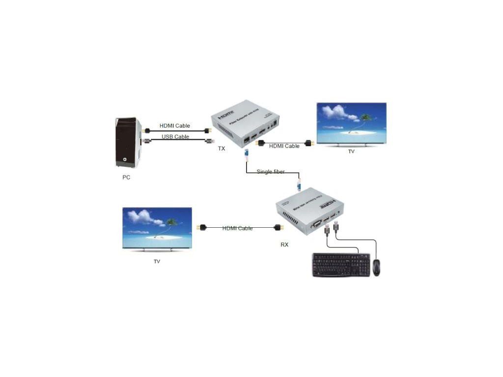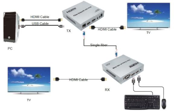 Zařízení umožňuje přenášet signály HDMI, IR, RS232 a USB prostřednictvím jednovidového optického vlákna na vzdálenost až 20 km.