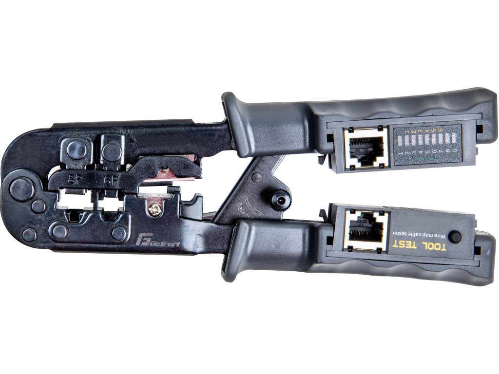 Krimpovací kleště na konektory Getfort 8P8C/RJ-45,6P6C/RJ-12,6P4C/RJ-11 s integrovaným testerem