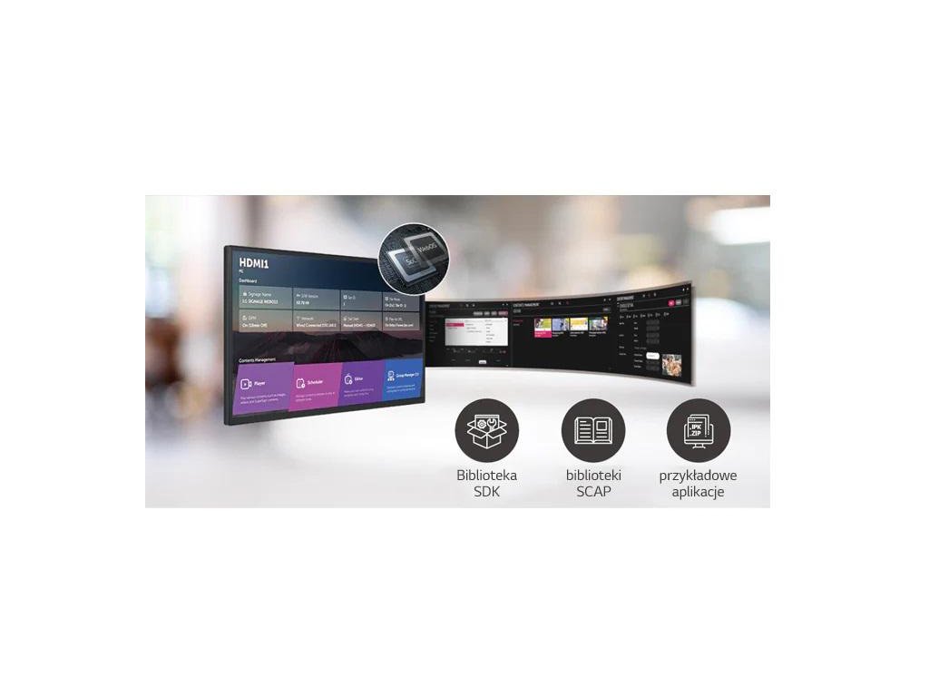 Na obrazovkách SM5J běží systém webOS 6.0, vylepšený modul na čipu* a webový modul, který umožňuje bezproblémový multi-tasking současně. Inteligentní platforma webOS společnosti LG pro značení vylepšuje uživatelský zážitek díky intuitivnímu grafickému uživatelskému rozhraní a poskytuje systémovým integrátorům a/nebo vývojářům jednoduché nástroje pro vývoj aplikací, jako jsou SDK (Software Development Kit), SCAP a vzorové aplikace.