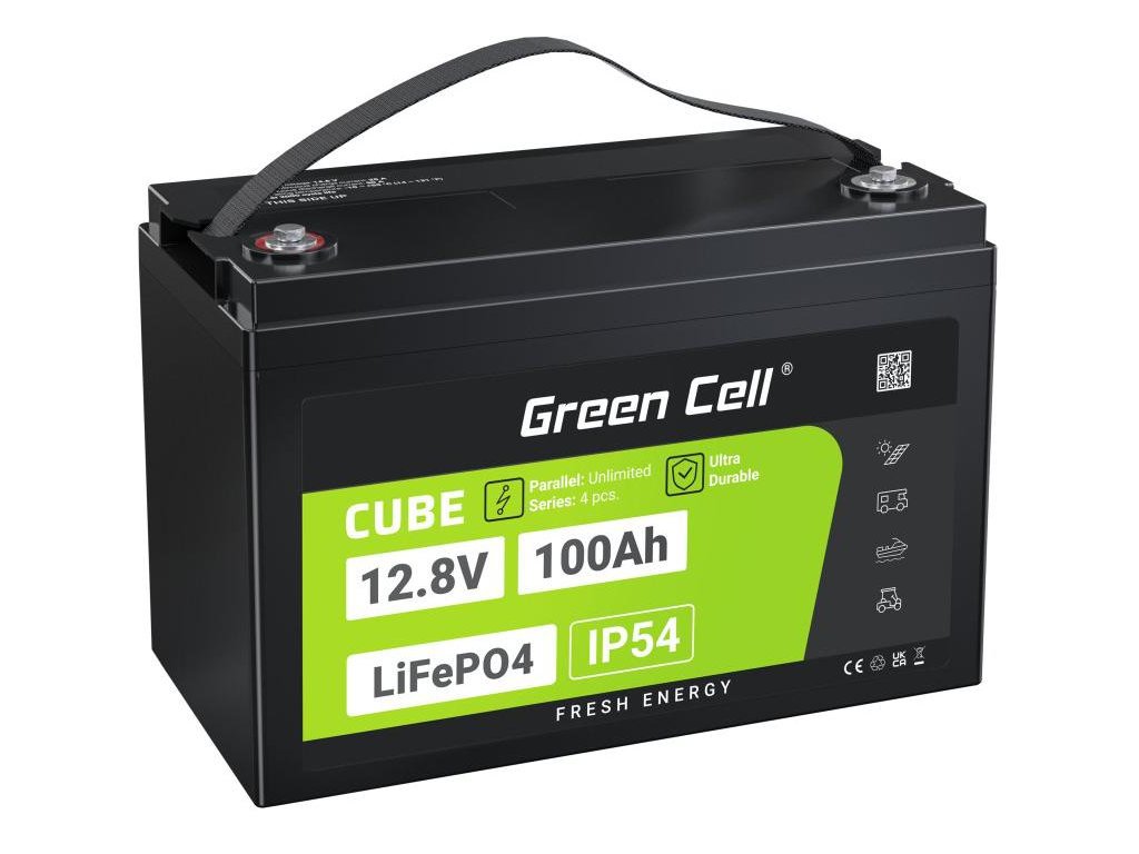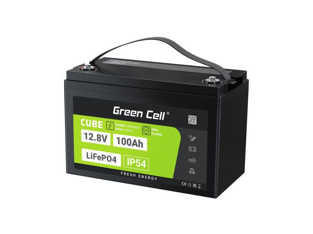 - Baterie LiFePO4 12,8 V Green Cell -Až 3x lehčí než jiné typy baterií. Spolehlivý a stabilní zdroj energie, který zaručuje trvalý vybíjecí proud 1C a vysoký nabíjecí výkon. Přizpůsobeno pro cyklický provoz.