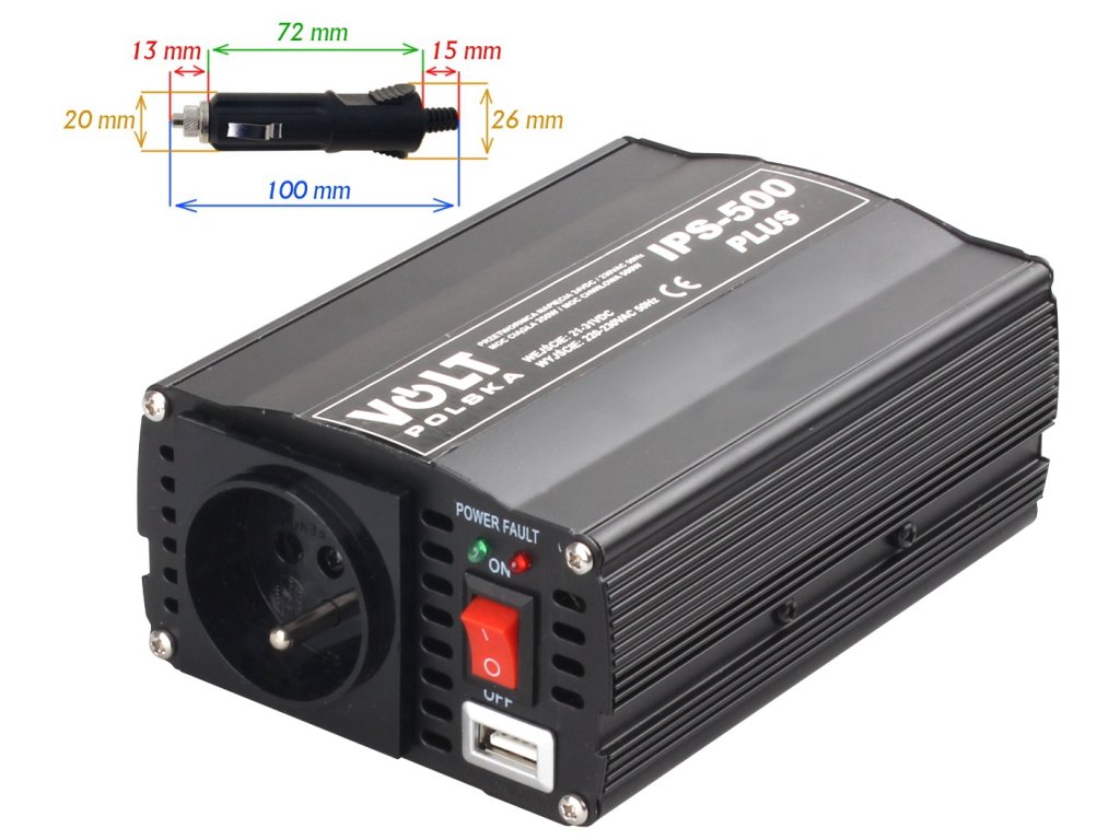 Řada elektronických měničů napětí IPS je určena k napájení elektrických zařízení, která vyžadují střídavé napětí 230 V z baterií a stejnosměrných 24V automobilových systémů. Tyto měniče jsou ideální pro místa, kde není možnost přímého připojení k elektrické síti. Měniče řady IPS vytvářejí na svém výstupu tzv. modifikovanou sinusovku. Jedná se o obdélníkové střídavé napětí, jehož efektivní hodnota je shodná s efektivní hodnotou sinusového průběhu, který se nachází v napájecí síti. Použitím tohoto způsobu výroby napětí je možné výrazně snížit cenu a zvýšit spolehlivost celého zařízení. Převodník je vybaven kabelem zakončeným zástrčkou do zapalovače automobilu.