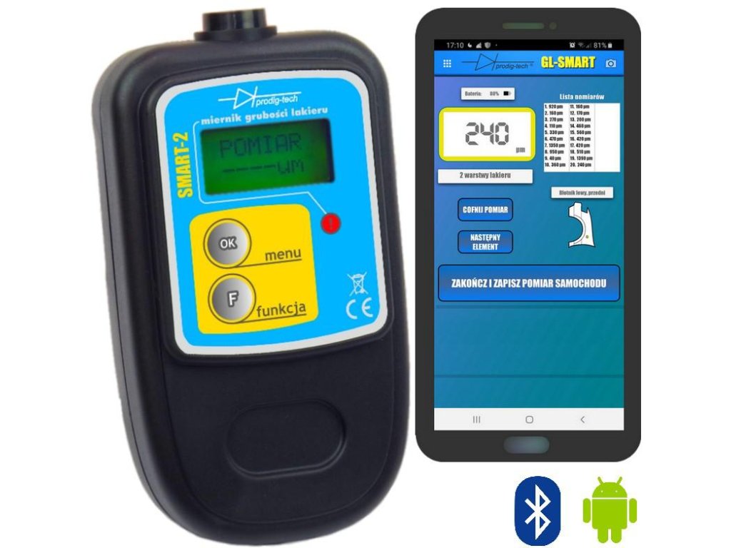 Měřič tloušťky laku GL-SMART-2 se používá k měření tloušťky vrstvy laku nanesené na ocelové, pozinkované a hliníkové karoserie. Poskytuje také možnost připojení telefonu se systémem Android vybaveného aplikací GL- SMART, která umožňuje ukládání a generování zpráv.