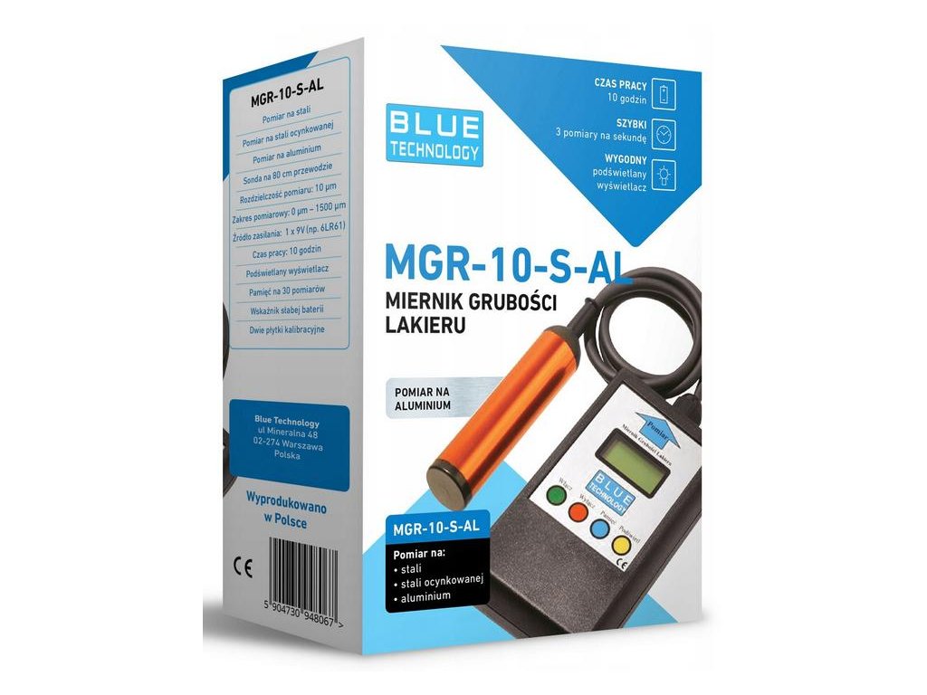 Technické specifikace měřiče tloušťky laku MGR-10-S-AL: