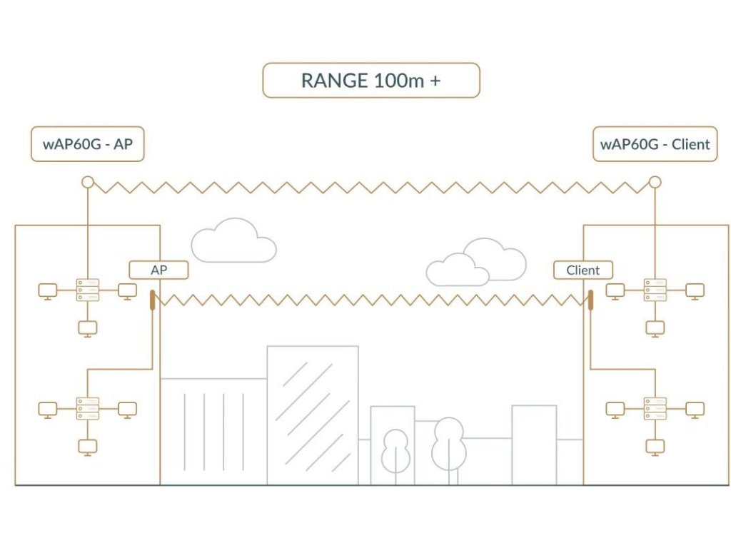 AP wAP 60G podporuje až 8 souběžných klientů (wAP 60G s licencí L3) na vzdálenost 100 m+ .